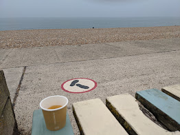 I thought breakfast on the beach would be a nice way to start the day, and after a quick bit of research I found Frankie's Beach Cafe in Seaford. It was a grey, hazy sort of a day - weather which never really abated for the whole weekend - and consequently, despite being a Saturday in August, the pebble beach at Seaford was largely deserted. Frankie's is a tiny kiosk, with a few picnic tables next to it, where they make a thoroughly decent espresso and offer a selection of toasted sandwiches, served with a smile.